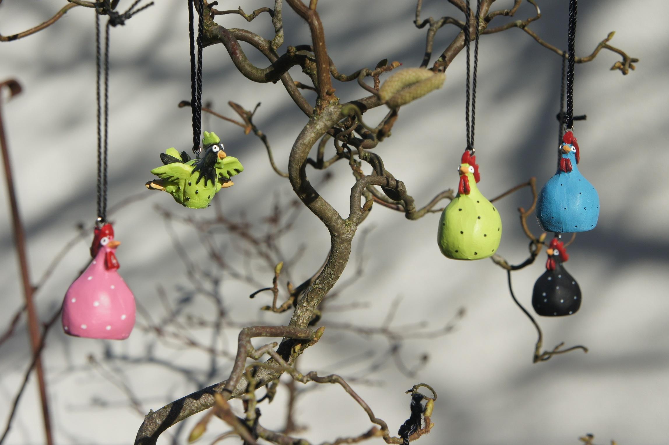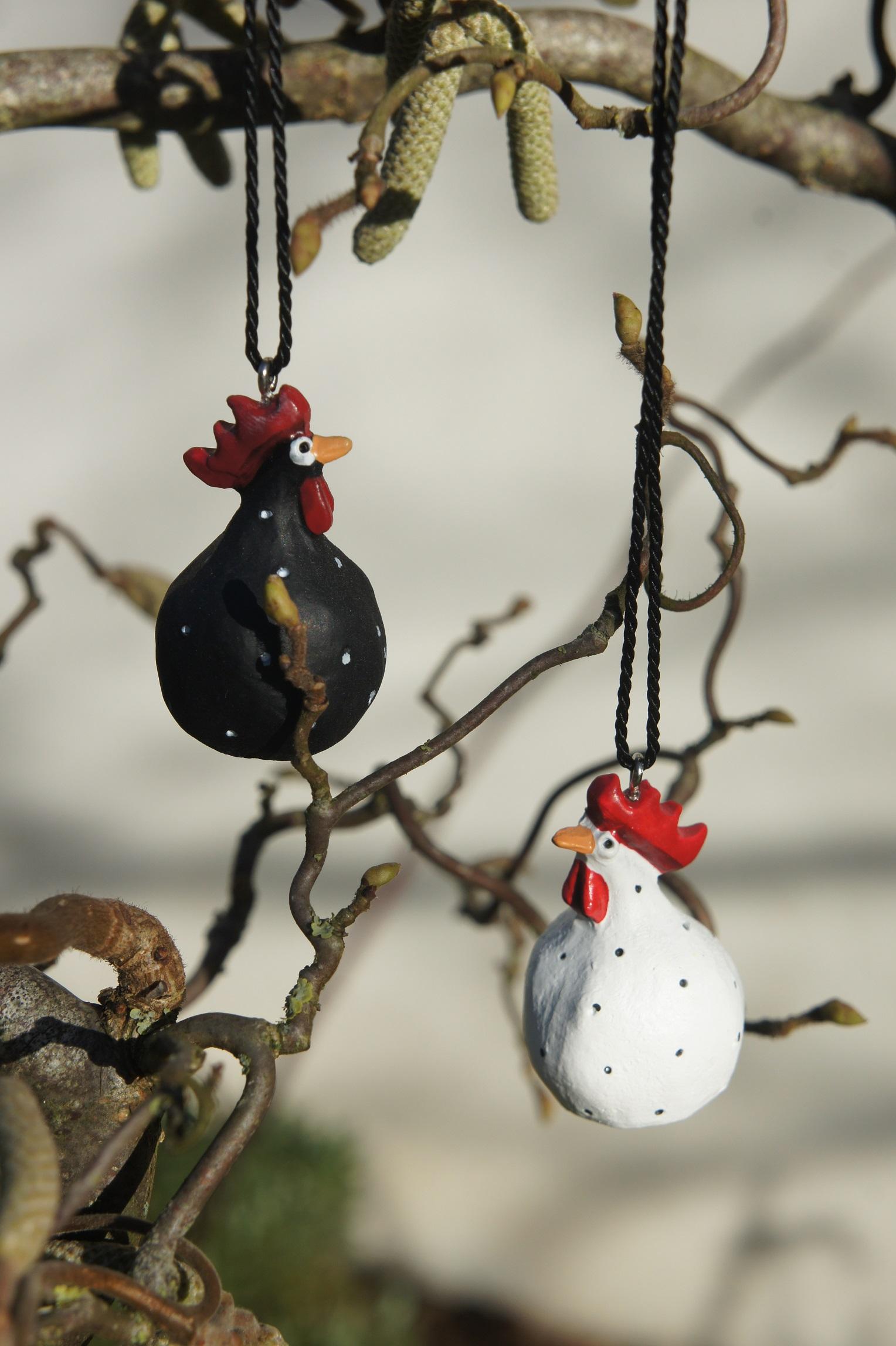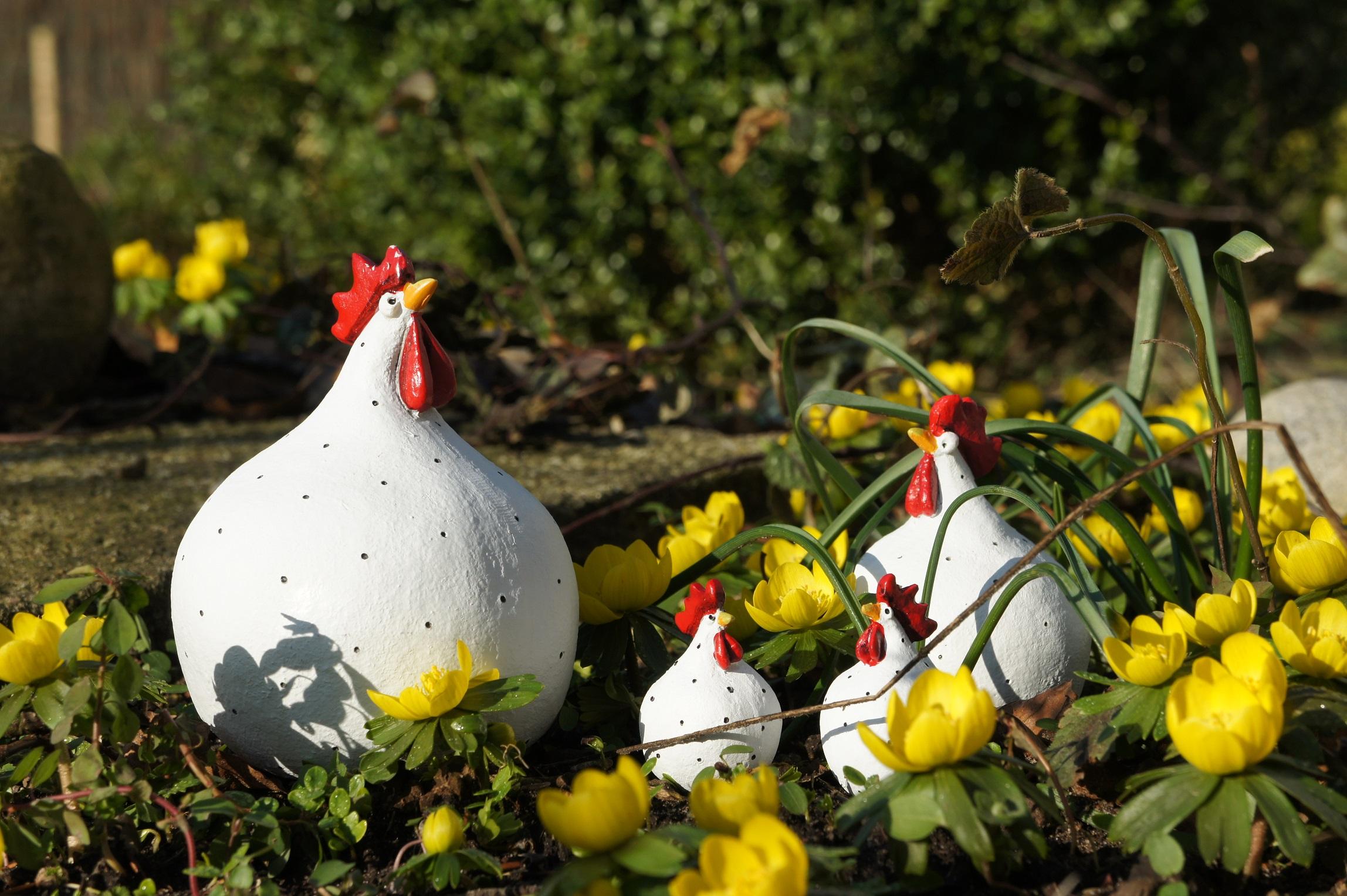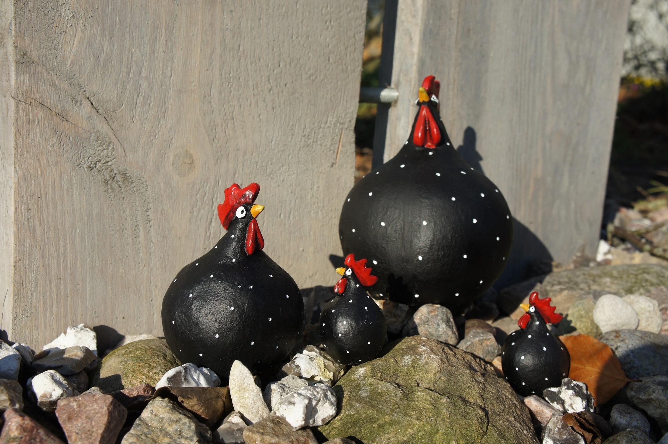 Farbenfrohe Hühner und Hähne aus Polyresin (frostfest)